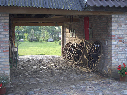 Hof, Wällen, Zäunen, Toren, Pergolen, Findlingen, landwirtschaftlichen