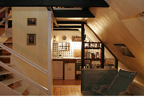 (Bett 1.6x2.0m). Treppe zur Schlafgalerie mit Stehhöhe unter dem First